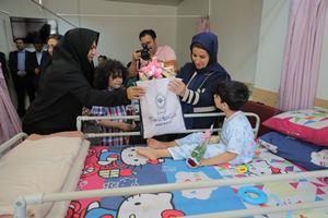 سفیر کانون جوانه های بانک نیز با ارزوی سلامتی و بهبودی برای این کودکان، گل و هدایایی به نمایندگی از اعضای کانون به کودکان بیمار اهدا کرد.