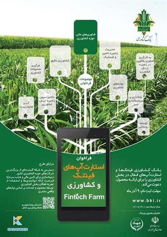 لازم به ذکر است استارت آپ های منتخب ، روز ۶ دی ماه در مراسم اختتامیه رویداد که با حضور مسئولان بانکی، کشاورزی، دانشگاهی، فرابورس و مشتریان برگزار می شود، برنامه پیشنهادی خود را برای تعامل و کسب و کار با همکاری بانک ارائه خواهند داد.