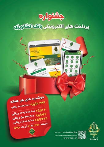 گفتنی است، هر تراکنش ۱۰۰هزار ریالی شارژ در درگاه های پرداخت الکترونیکی بانک کشاورزی، ۲ امتیاز (بدون محدودیت) و هر تراکنش پرداخت قبض شرکت های خدماتی توسط این درگاه ها، ۱ امتیاز ( با محدودیت ۱۰ امتیاز در ماه) خواهد داشت؛ مرحله اول جشنواره پرداخت های الکترونیکی بانک کشاورزی از ۲۰ آبان آغاز و تا ۲۰ اسفند ماه سال ۱۳۹۷ ادامه داشت و مرحله دوم این جشنواره از اسفندماه سال ۹۷ تا ۲۱ خرداد سال ۱۳۹۸ مقارن با سالروز تاسیس بانک کشاورزی خواهد بود.