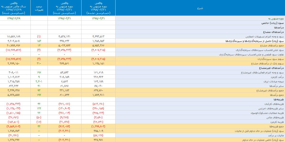 لازم به ذکر است، افزایش ۱۹۲ درصدی جمع درآمدها از عمده دلایل شناسایی سود نسبت به مدت مشابه سال قبل است.