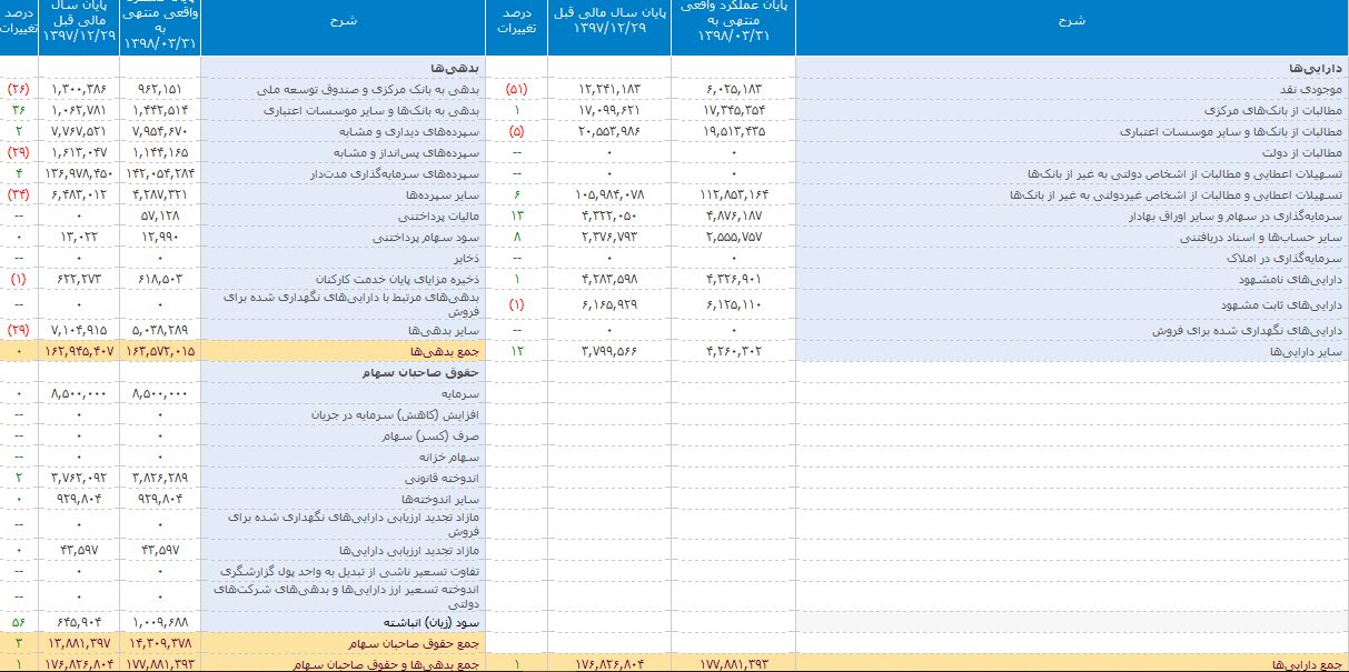 آخرین وضعیت صورتهای مالی بانک کار آفرین
