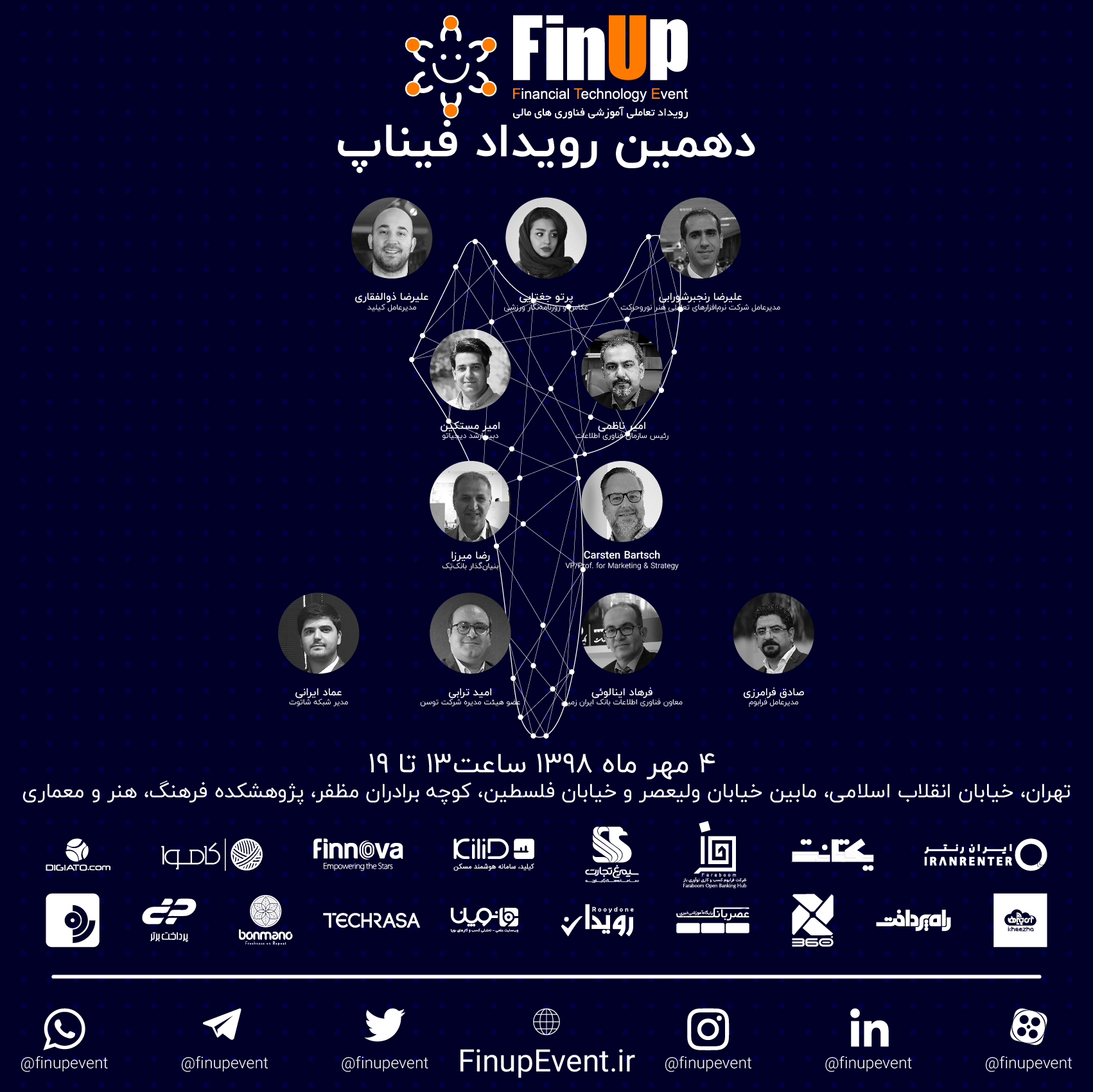 علاقمندان به حضور در دهمین رویداد فیناپ می‌توانند از طریق ایوند evand.com/events/finup2 ثبت‌نام کرده و برای کسب اطلاعات بیشتر و اخبار رویداد، شبکه‌های اجتماعی فیناپ با شناسۀ Finupevent را دنبال کنند.