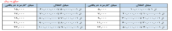بر اساس این گزارش، میزان کارمزد انتقال وجه به صورت پلکانی و به شرح جدول زیر محاسبه خواهد شد.
