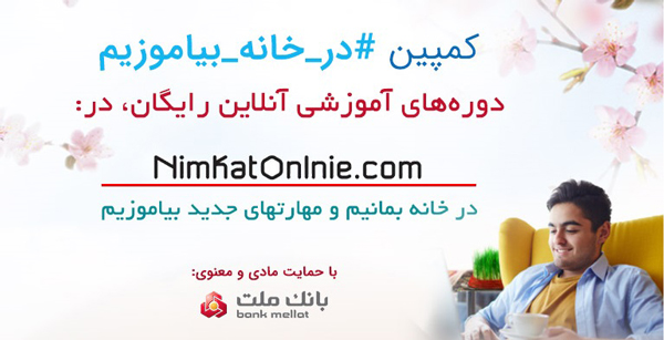 بر پایه ی این گزارش، بانک ملت در راستای ایفای مسوولیت اجتماعی، با توجه به شرایط فعلی در حوزه سلامت، تعطیلات اجباری بر اثر نگرانی از شیوع ویروس کرونا و لزوم خانهنشینی مردم، و ایجاد فرصت مناسب برای آموزش های رایگان باهدف ارتقاء دانش و مهارت های فناورانه از این کمپین حمایت کرده است.