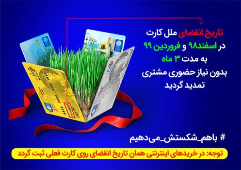 لازم به ذکر است، دارندگان ملل کارت که تاریخ انقضای روی کارت آن ها در بهمن، اسفند ۹۸ و فروردین ۹۹ تمام می شود در خرید های اینترنتی باید همان تاریخ انقضای روی کارت را درج کنند.