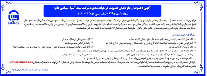 دعوت بیمه آسیا از داوطلبان عضویت در هیأت مدیره