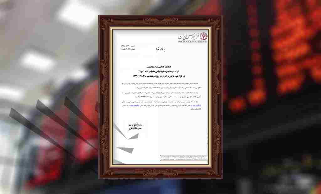 به گزارش اخبارپول، با توجه به عملکرد مطلوب و به تبع آن دستاوردهای قابل توجه مالی، در تاریخ ۱۶ تیرماه نماد بیمه تجارتنو پس از گذر از مرحله پذیرش، دربازار دوم درج شد و حال بنابر اعلام فرابورس، دوشنبه سوم شهریورماه، نماد معاملاتی سهام این شرکت تحت عنوان ” بنو ۱ ” در بازار دوم گشایش مییابد.