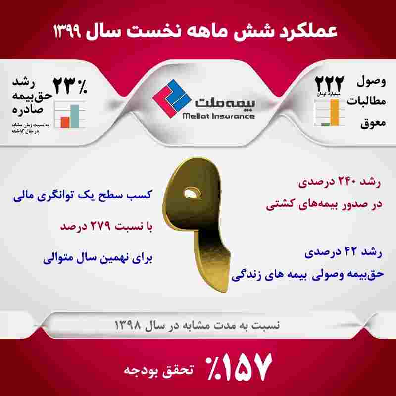 بیمه ملت با مدیرعاملی دکتر دلفراز در حوزه شفافیت مالی و وصول مطالبات، بسیار موفق عمل کرده و در ششماهه نخست سالجاری توانسته مجموعه ۲۲۲ میلیارد تومان از مطالبات این شرکت را وصول کند.