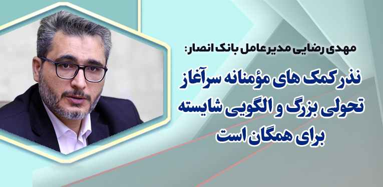 مدیرعامل بانک انصار: کمک‌های مؤمنانه سرآغاز تحولی بزرگ و شایسته برای همگان است