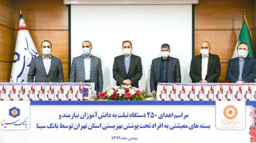 اهدای تبلت و بسته‌های معیشتی توسط بانک سینا به دانش‌آموزان نیازمند و افراد تحت پوشش بهزیستی