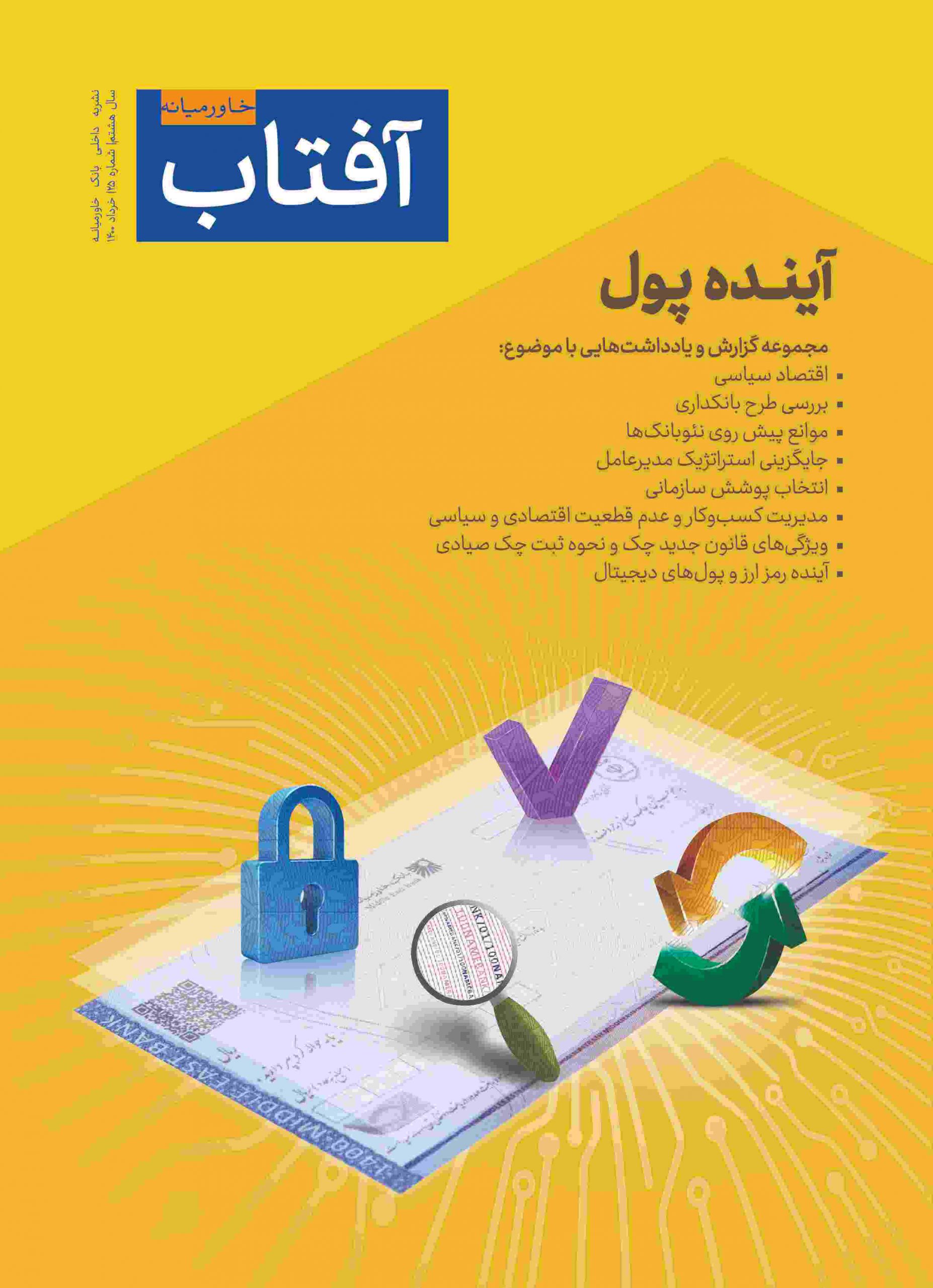 در پرونده بانکی بیست و پنجمین شماره نشریه آفتاب خاورمیانه علاوه بر موضوع آینده رمز ارز و پولهای دیجیتال مقالاتی در زمینه موانع پیش روی نئوبانکها و قانون جدید چک نوشته شده است و کوشیده شده از زاویهای دیگر به آینده نظام پولی جهان و دیجیتالی شدن بانکها نگریسته شود.