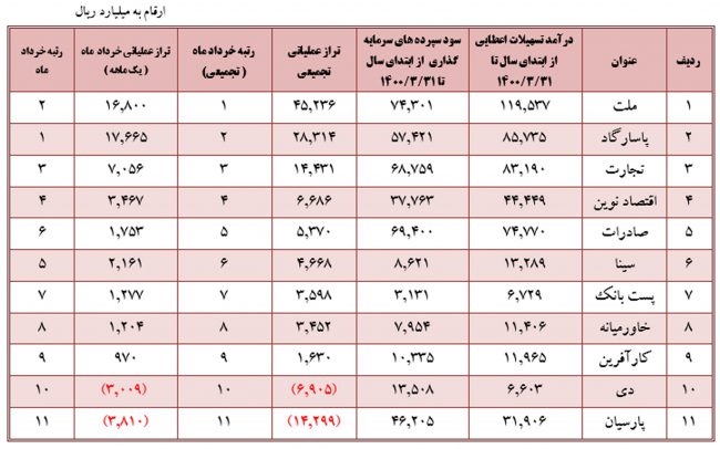 به گزارش اخبارپول، تحلیل عملکرد خرداد ماه سال ۱۴۰۰ بانک ملت به شرح زیر است: