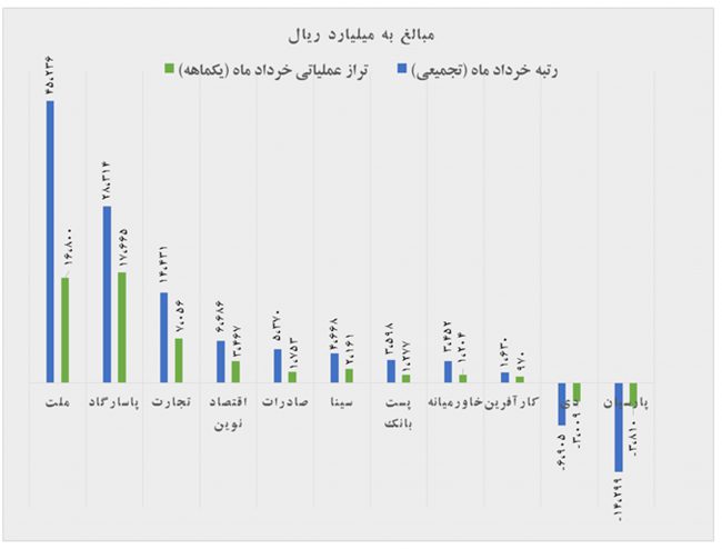 نمودار تراز عملیاتی بانک های بورسی در خرداد ماه ۱۴۰۰