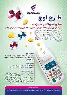 پذیرندگان بهرهبردار از پایانههای فروشگاهی بانک رفاه کارگران میتوانند برای کسب اطلاعات بیشتر و بهرهبرداری از مزایای طرح اوج، به شعب این بانک در سراسر کشور مراجعه کنند.
