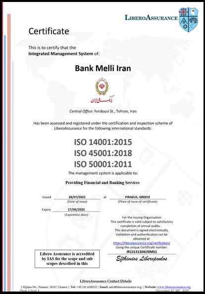 لازم به ذکر است، همزمان با دریافت این گواهینامه، کمیته مدیریت سبز نیز در بانک ملی ایران تشکیل شد.