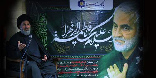 به گزارش اخبارپول، در این مراسم بعد از قرائت زیارت عاشورا، حجت الاسلام والمسلمین بنی هاشمی در خصوص کرامات و ابعاد شخصیتی حضرت صدیقه کبری (س) سخنرانی و به ذکر مصیبت پرداخت و گفت: مهمترین خصلت بانوی بزرگ اسلام از جان گذشتگی و ولایتمداری بود و شهادت طلبانی چون سردار قاسم سلیمانی پرورش یافتگان این مکتب الهی هستند. وی شهادت را رسیدن به وصال پرودگار دانست که لازمه آن مودت و پیروی از مکتب الهی است.