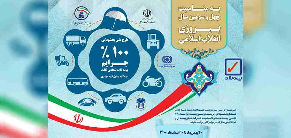 به گزارش اخبارپول، به مناسبت چهل و سومین سال پیروزی انقلاب اسلامی در جهت توسعه و ترویج فرهنگ بیمه در جامعه، طرح ملی بخشودگی ۱۰۰ درصد جرایم بیمه نامه شخص ثالث وسایل نقلیه موتوری از سوی بیمه رازی اجرایی می‌شود.