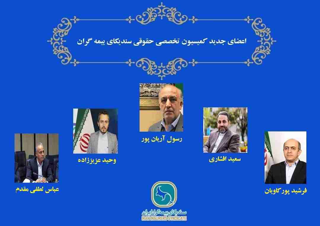 همچنین در جلسه ای با حضور و تصویب اعضای جدید کمیسیون حقوقی سندیکای بیمه گران، سعید افشاری به عنوان رئیس این کمیسیون انتخاب شد. سندیکای بیمه گران ایران دارای پنج کمیسیون تخصصی شامل کمیسیون های فنی، مالی، حقوقی، فناوری اطلاعات و سرمایه گذاری است.
