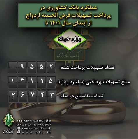 این گزارش می افزاید: در حال حاضر ۲۶۷۴۳ نفر در صف انتظار برای دریافت تسهیلات قرض الحسنه ازدواج قرار دارند و روند پرداخت با جدیت در حال انجام است.