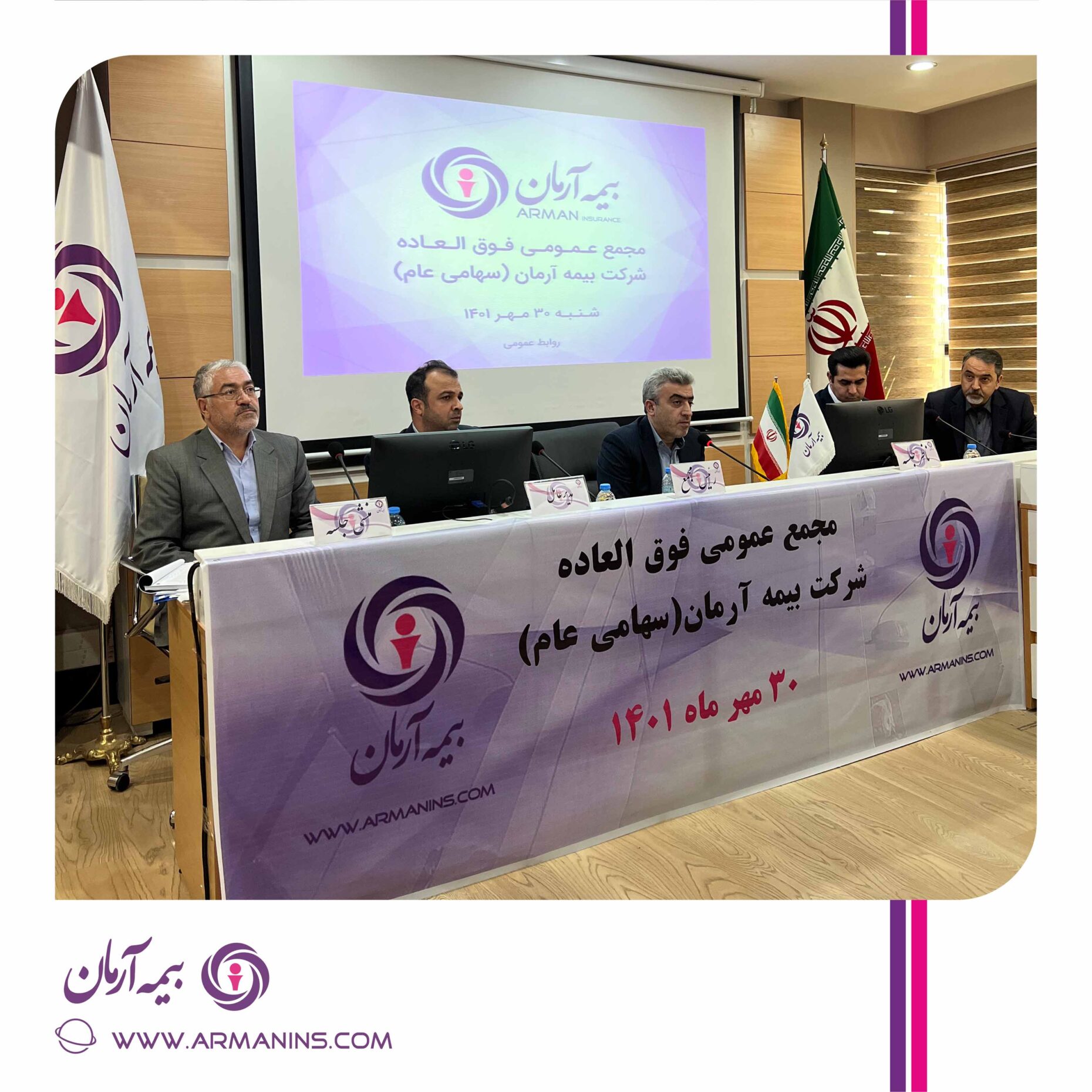 جلسه مجمع عمومی فوق العاده بیمه آرمان در تاریخ سی ام مهر ۱۴۰۱ در سالن اجتماعات شمس تبریزی ساختمان مرکزی بیمه آرمان با حضور ۷۵/۷۲ درصد از سهامداران به صورت حضوری و آنلاین برگزار شد که پس از ارائه گزارش توجیهی افزایش سرمایه و گزارش حسابرس مستقل و بازرس قانونی و همچنین بحث و بررسی درخصوص سوالات مطرح شده با افزایش سرمایه این شرکت از۲.۵۰۰ میلیارد ریال به مبلغ ۳.۰۰۰ میلیارد ریال (معادل ۲۰ درصد) از محل آورده نقدی سهامداران به مبلغ ۵۰۰ میلیارد ریال با اکثریت آرا حاضران در جلسه، تصویب شد.