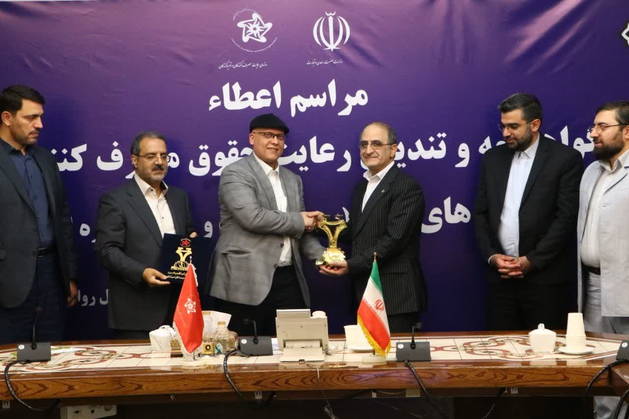 گفتنی است آیین اعطای بیست و یکمین گواهینامه و تندیس رعایت حمایت از حقوق مصرف کنندگان به شرکت های برتر، روز چهارشنبه ۲۰ اردیبهشت ماه ۱۴۰۲ با حضور حسین فرهیدزاده معاون وزیر و رئیس سازمان حمایت مصرف کنندگان و تولیدکنندگان ، حسین زاده قشمی مدیر کل روابط عمومی و دبیر همایش و همچنین نمایندگان شرکت های برتر در ساختمان مرکزی وزارت صمت برگزار شد و در این آیین تندیس طلایی این دوره به سید محمد ناصر مبرقعی عضو هیات مدیره بیمه ایران اعطا شد .