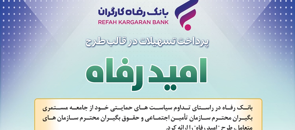 لازم به ذکر است، تسهیلات طرح امید رفاه به مستمری‌بگیران معزز سازمان تامین اجتماعی که حقوق خود را از بانک رفاه کارگران دریافت می‌کنند و کارکنان بازنشسته بانک رفاه، در قالب عقد قرض‌الحسنه به میزان سی میلیون ریال تا یکصد میلیون ریال با نرخ کارمزد سالانه ۴ درصد پرداخت می‌شود. همچنین مستمری‌بگیران معزز سازمان تامین اجتماعی که حقوق خود را از بانک رفاه کارگران دریافت می‌کنند و کارکنان بازنشسته بانک رفاه و نیز کارکنان شرکت‌ها و سازمان‌های متعامل با بانک رفاه کارگران، می‌توانند از تسهیلات طرح “امید رفاه” برای تامین کالا و خدمات مورد نیاز خانوار خود در قالب عقد مرابحه به میزان سی میلیون ریال تا یک میلیارد ریال با نرخ سود سالانه ۶ درصد بهره‌مند شوند.
