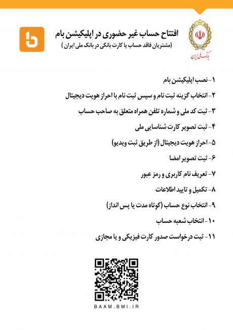 به گزارش اخبارپول، اگر در بانک ملی ایران حساب ندارید، می توانید با ثبت نام در سامانه بام ضمن افتتاح حساب، درخواست خود برای فعالسازی پیامک و صدور کارت را ثبت کنید.