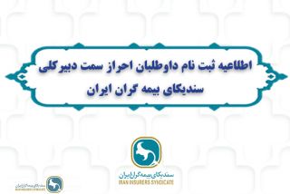 به گزارش اخبارپول، بنابراین از داوطلبان احراز سمت دبیرکلی درخواست میشود از روز شنبه مورخ ۱۴۰۲/۰۵/۲۸ تا ساعت ۱۳ روز پنجشنبه مورخ ۱۴۰۲/۰۶/۰۹ درخواست کتبی خود همراه با مشخصات کامل (پیشینه شغلی، مهارتی و تحصیلی) و برنامه کاری ۲ ساله را شخصاً و یا توسط نماینده به دبیرخانه سندیکای بیمهگران ایران واقع در میدان جهاد (دکتر فاطمی)، میدان سلماس، ضلع جنوب غربی میدان، خیابان ۶/۱، پلاک ۹۹ طبقه چهارم (جناب آقای سید علی سیدی گنجی) تحویل و رسید ممهور به مهر سندیکا را دریافت فرمایند.