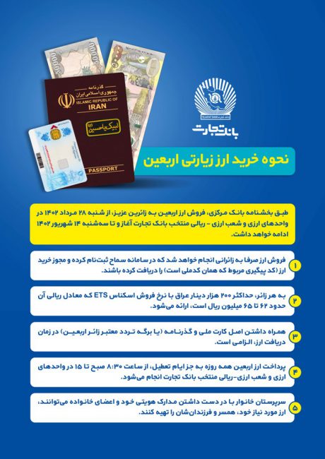 شرایط موردنیاز برای فروش ارز به زائرین اربعین در بانک تجارت