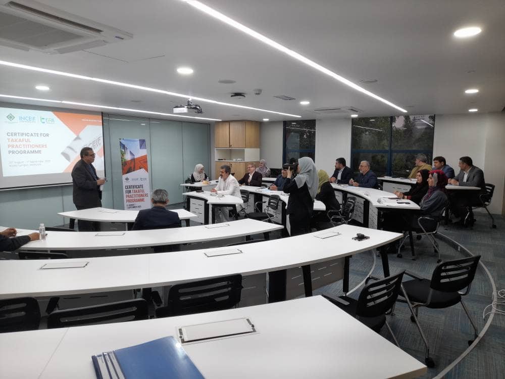 کلاس‌های مختلف این دوره آموزشی طی دو هفته متوالی به صورت فشرده و حضوری روزانه از ساعت ۸:۳۰ تا ۱۷ به وقت محلی در محل دانشگاه اینسیف، برگزار شد. دانش‌پژوهان در بخش عملیاتی این دوره آموزشی در کنار آموزه‌های یاد شده، از انجمن تکافل مالزی، شرکت تکافل اتیکا و دیگر موسسات مرتبط بازدید نموده و با نحوه فعالیت آن‌ها از نزدیک آشنا شدند. در پایان دوره نیز پس از برگزاری آزمون ارزیابی علمی، گواهینامه صلاحیت حرفه ای تکافل از سوی رئیس دانشگاه اینسیف به شرکت کنندگان در این دوره تخصصی اعطا شد.