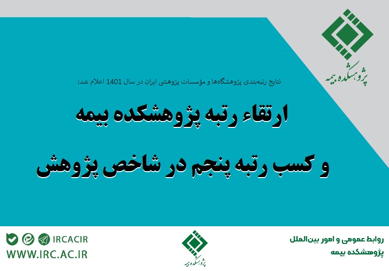 شایان ذکر است در رتبهبندی مؤسسه استنادی و پایش علم و فناوری جهان اسلام در بازه ۱۳۹۹ تا ۱۴۰۰، پژوهشکده بیمه از میان ۲۲ مرکز پژوهشی کشور، در جایگاه ۱۷ام و در شاخص پژوهش، در رتبه ۱۹ قرار داشت.