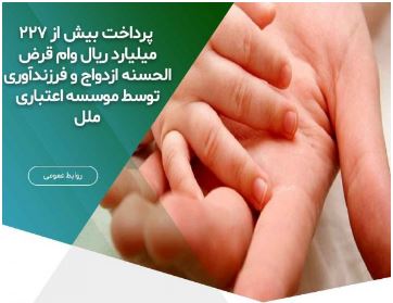 به گزارش اخبارپول، موسسه ملل در راستای حمایت از تشکیل خانواده و جوانی جمعیت و افزایش فرزندآوری مبلغ ۴۰۰/ ۲۲۷ میلیون ریال وام قرض الحسنه ازدواج و فرزندآوری به متقاضیان پرداخت نمود.