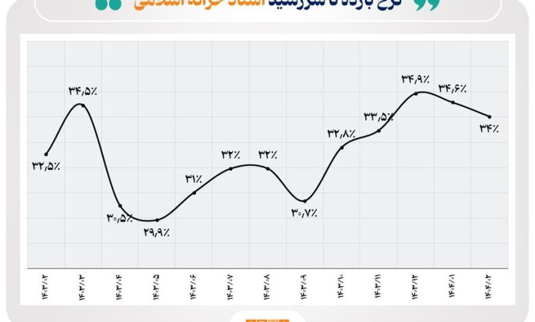 آمار و داده محاسباتی مدیریت پژوهش، توسعه و مطالعات اسلامی سازمان بورس و اوراق بهادار نشان می‌دهد؛ نرخ بازده انتظاری تا سررسید اوراق اخزا که پس از یک روند افزایشی در اسفند ماه سال گذشته به ۳۴.۹درصد افزایش یافته بود در فروردین ماه به ۳۴.۶درصد و در اردیبهشت ماه امسال با ۰.۶ واحد درصد کاهش به ۳۴درصد رسید.