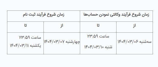 لازم به ذکر است، زمان شروع فرآیند وکالتی نمودن حسابها از روز سهشنبه ششم خرداد ماه تا ساعت ۲۴ شنبه دهم خردادماه سال جاری است.
