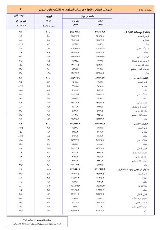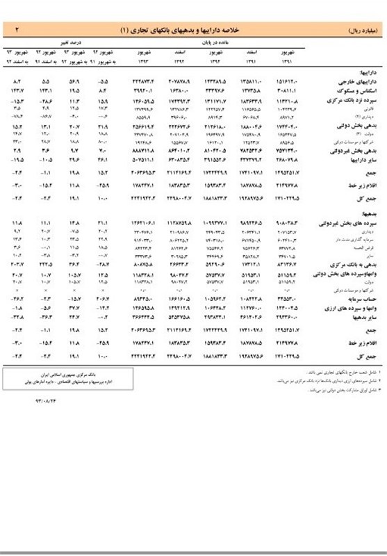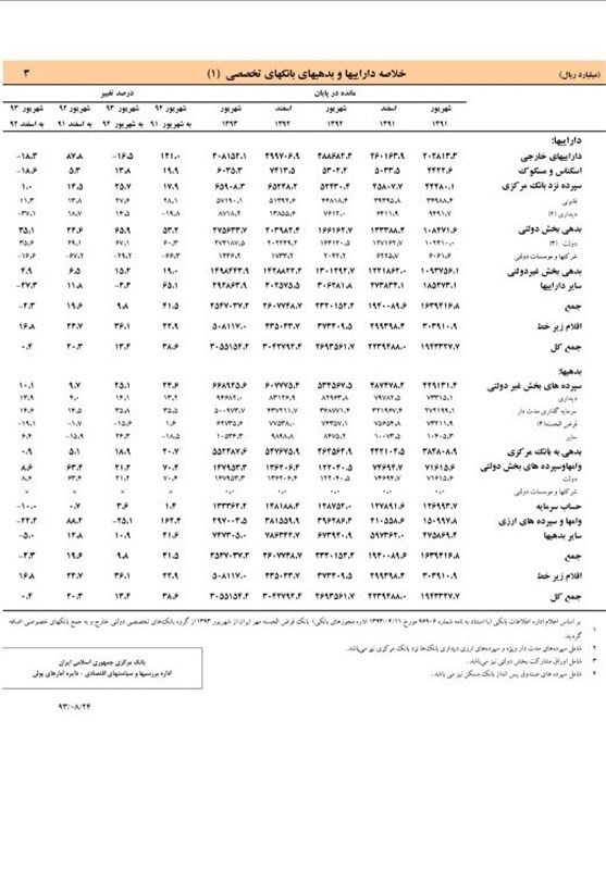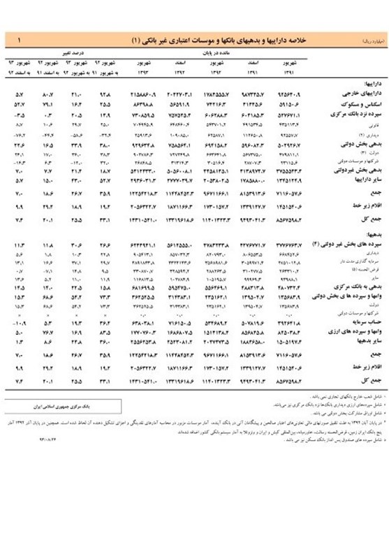 جدول کامل ارقام جدید بانکی تا پایان شهریورماه سال ۹۳ به شرح زیر است: