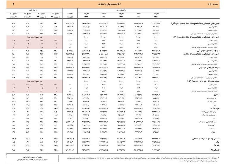 گفتنی است، بدهی بخش غیردولتی با ۷ درصد رشد نسبت به شهریور ۹۲ معادل ۵۴۱۲۴۳۳.۰ میلیارد ریال برآورد شده است.