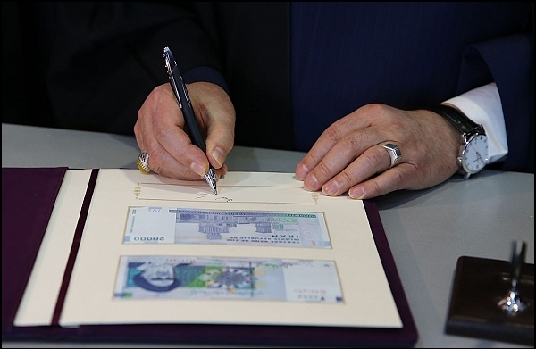 به گزارش پایگاه اطلاع رسانی اخبارپول(poolpress.ir)، در این مراسم حجت الاسلام و المسلمین حسن روحانی، ضمن امضا یادبود رونمایی از اسکناس جدید ۲ هزار تومانی، ارتقا بانکداری الکترونیکی را گامی در جهت توسعه دولت الکترونیک دانست و از شفافیت در انتشار اطلاعات و نظارت بیشتر بر فعالیت نظام بانکی به عنوان یکی از سیاست های اصولی دولت یاد کرد.