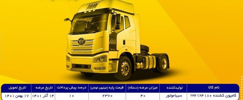 بیشتر بخوانید »بورس کالا شرایط خرید کامیون کشنده فاو متعلق به شرکت سیباموتور را که قرار است ۱۴ آذر عرضه شود، اعلام…