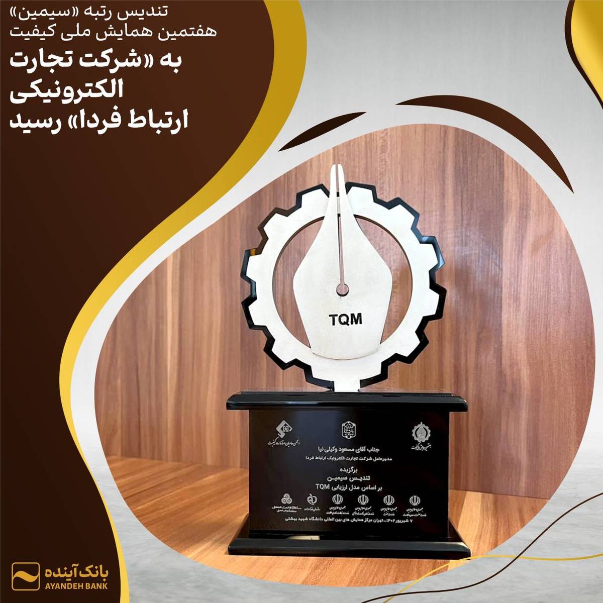«شرکت تجارت الکترونیکی ارتباط فردا» وابسته به بانک آینده در هفتمین همایش ملی کیفیت که شهریورماه امسال در دانشگاه شهید…