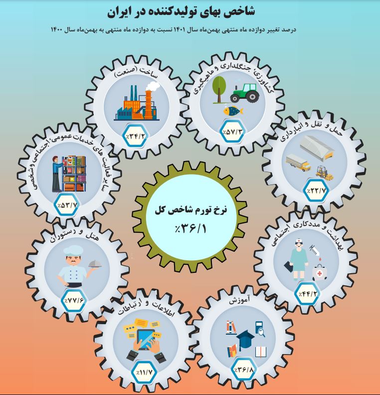 بیشتر بخوانید »نرخ تورم در دوازده ماه منتهی به بهمنماه 1401 نسبت به دوازده ماه منتهی به بهمنماه 1400 معادل به 43.6 درصد رسید.